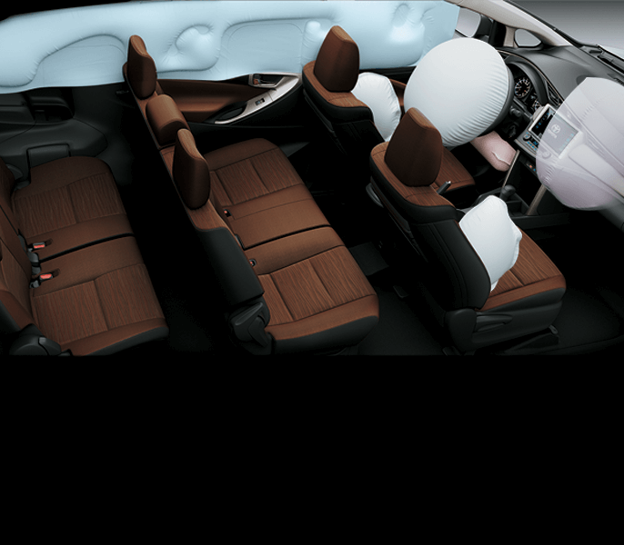 Hệ thống túi khí được tăng cường tối đa tới 7 túi khí không những bảo vệ tuyệt đối hàng ghế người lái, mà còn cho hành khách phía sau trong trường hợp xảy ra va chạm có thể gây nguy hiểm.